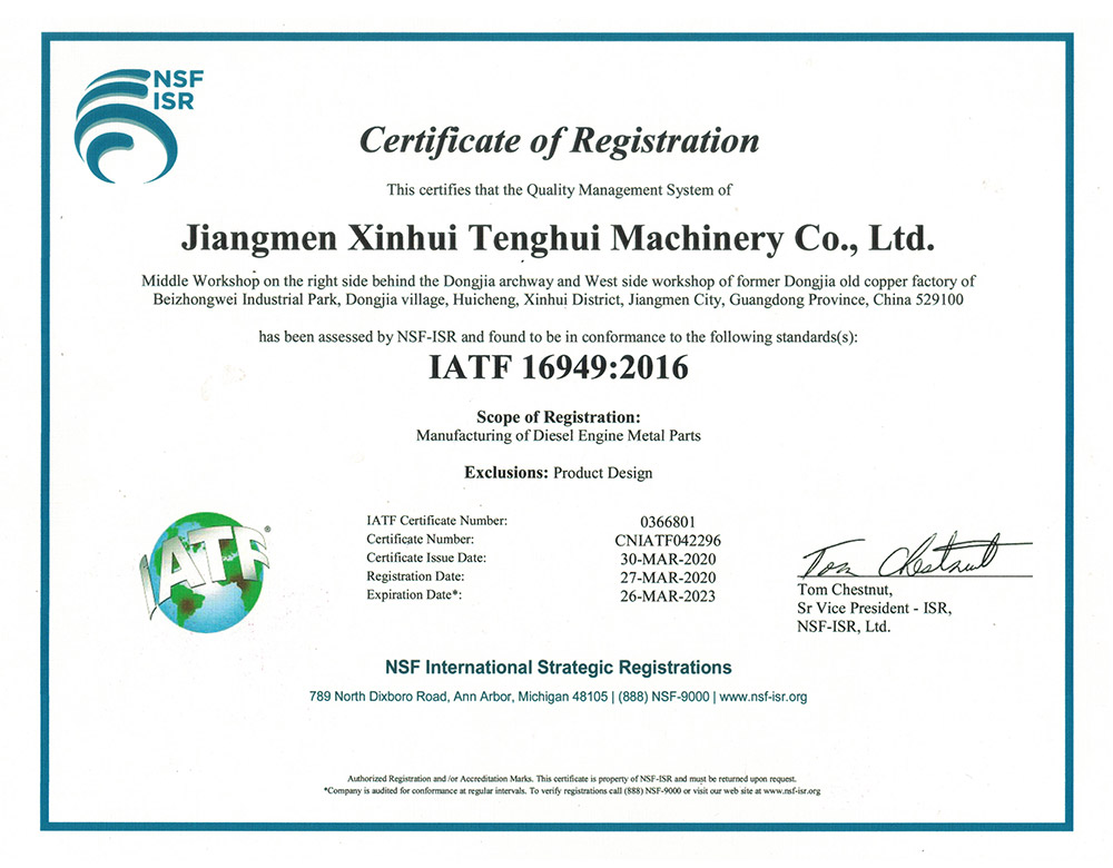 The company has been awarded the Guangdong Province High tech Enterprise Certificate, IATF Certification Certificate, Quality Management System Certification Certificate, and multiple national patent certificates.