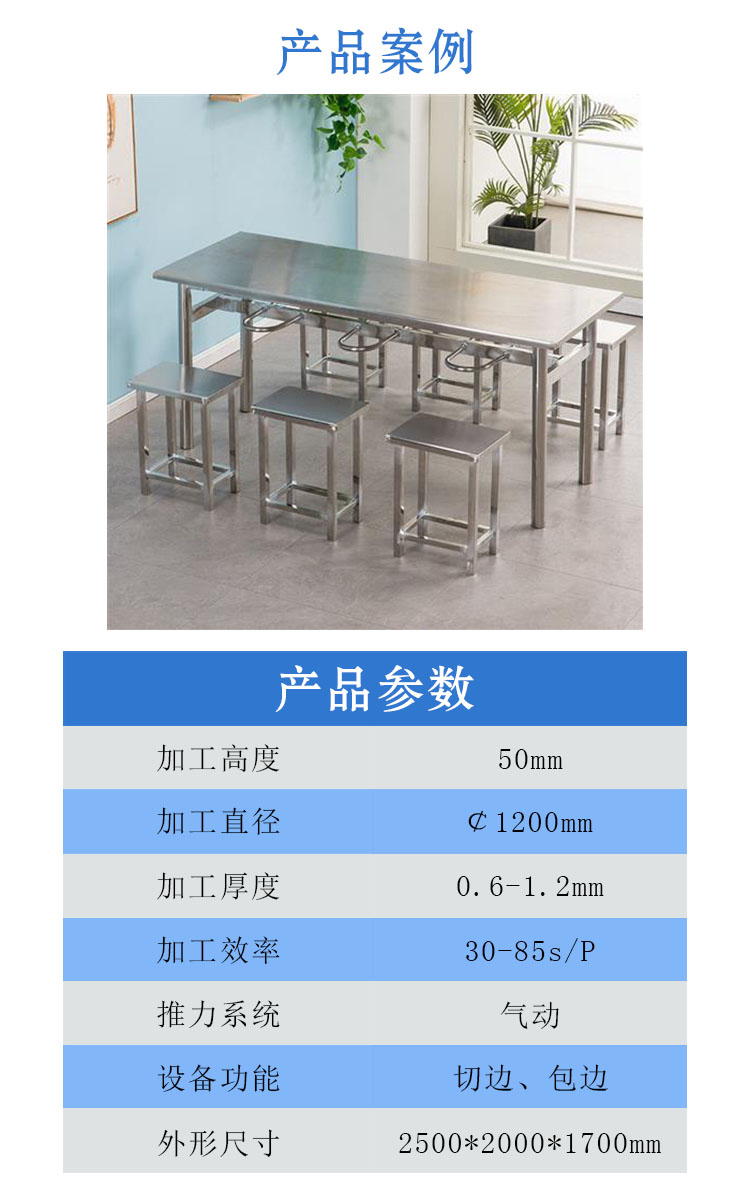 本文介紹的是異形切邊包邊機用于食堂餐桌椅加工設備,先把產品工件放入工作臺,按一鍵啟動后模具旋轉,切邊功能座進刀,跟隨模具旋轉施壓剪掉加工件的邊料,剪邊完成后包邊輪到達工件邊緣進行包邊,最后取出加工后的產品工件。 (公司根據客戶需求,為客戶量身定制適合的設備,歡迎新老客戶咨詢了解)