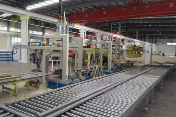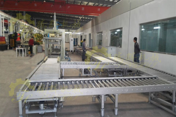 此套設備自動化程度高、操作簡單、輕松、產品質量保證、并且安全、節能、減輕勞動強度。這一整套設備主要以中間兩臺包邊機為主,其他輸送線、吊送機和翻轉機為輔所組成的。這套生產設備,無論是機器的設計,還是生產現場的場地布置都是有著嚴格的要求的。